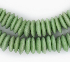 Dangle earrings with Ashanti glass saucer beads and textured brass arch are finished with gold filled earwires // Seafoam Green Bead// Earrings measure 2.25” long.
