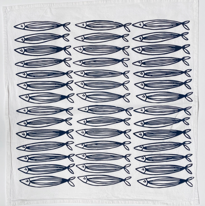 White Sardines Tea Towel